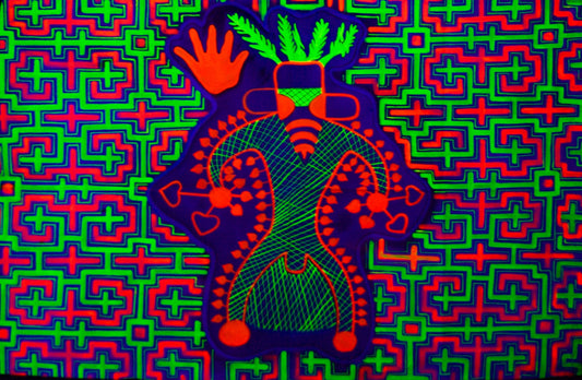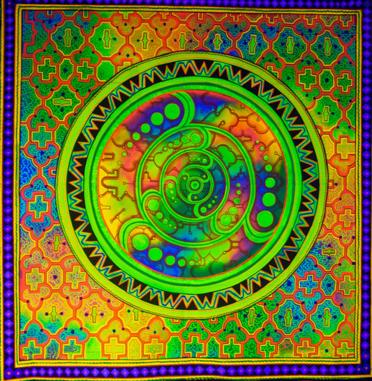 Crop Circle Shipibo UV painting big size - 1.5mx1.5m - fully blacklight glowing colors - psychedelic crop circle shipibo art