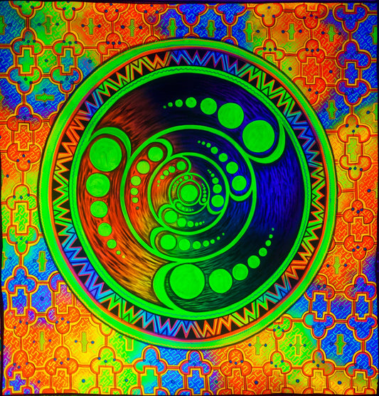 Crop Circle Ayahuasca UV painting big size - 1.5mx1.5m - fully blacklight glowing colors - psychedelic crop circle shipibo art