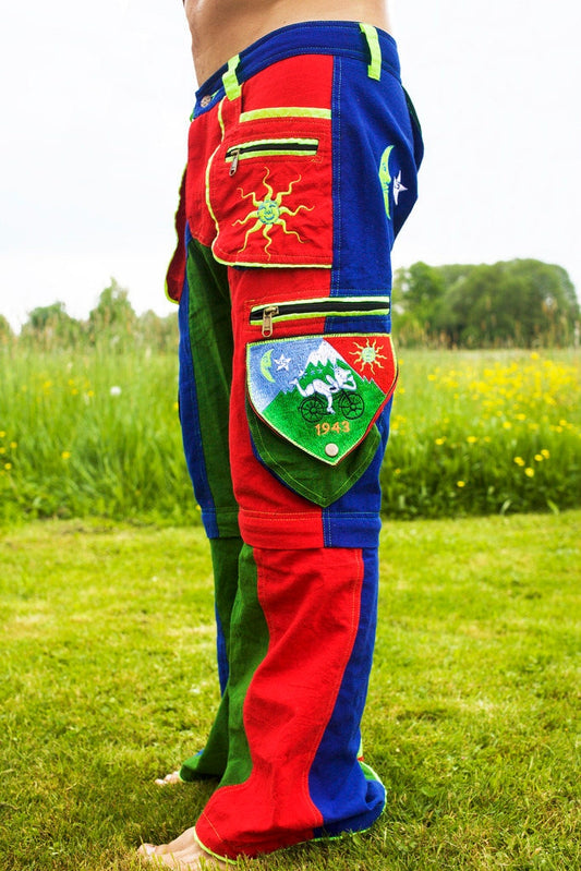 Bicycle Day LSD long Pants - 9 pockets with 4 zip locks - cult Albert Hofmann vintage - any size available handmade after order