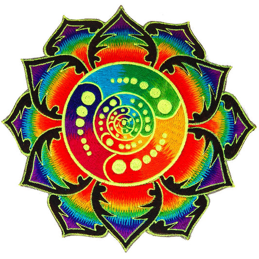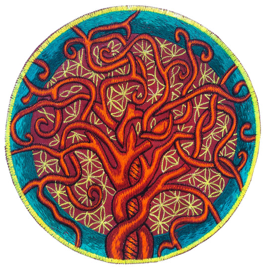 Flower of Life Tree of Life sacred geometry embroidery art patch blacklight glowing uv active for sew on machine washable ironable