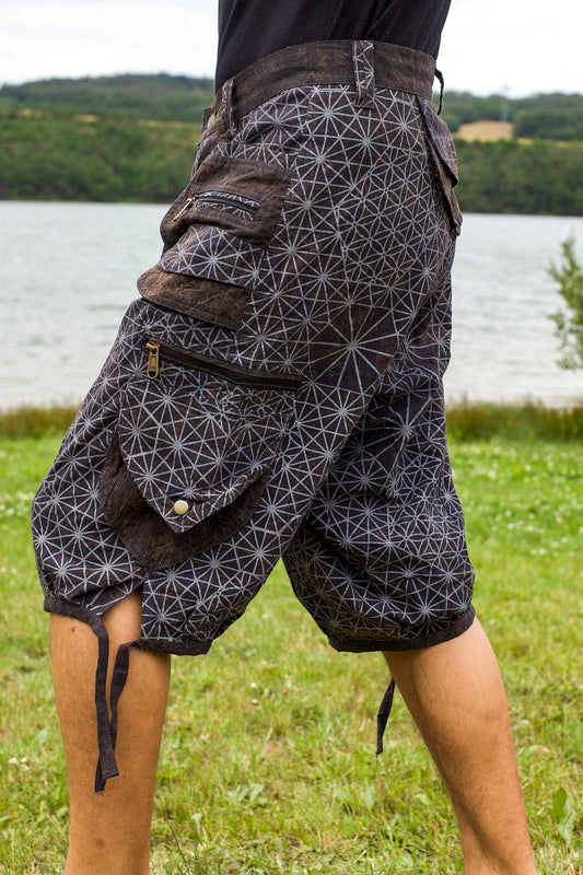 Asanoha Pants - 2 in 1 shorts and long pants - 9 pockets handmade sacred psychedelic cannabis japonese hemp geometry comfortable clamdiggers