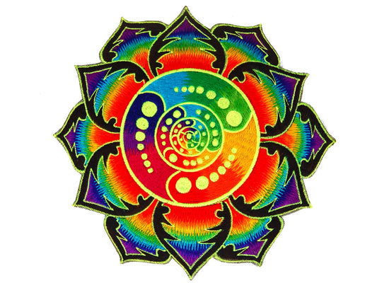 Rainbow Swastica Mandala - psychedelic 7 inch embroidery patch