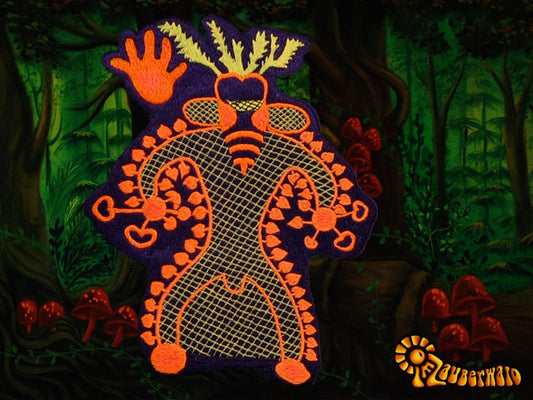Hyperspace alien embroidery DMT being blacklight glowing UV active psychedelic patch