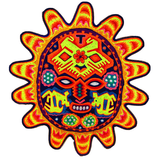 Huichol Sun Mask T-Shirt tribal shaman design blacklight handmade embroidery no print