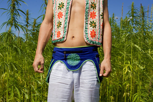 Beltbag Mushroom Planet Blue - 7 pockets, strong ziplocks, size adjustable - hook & loop and clip - blacklight active lines flower of life